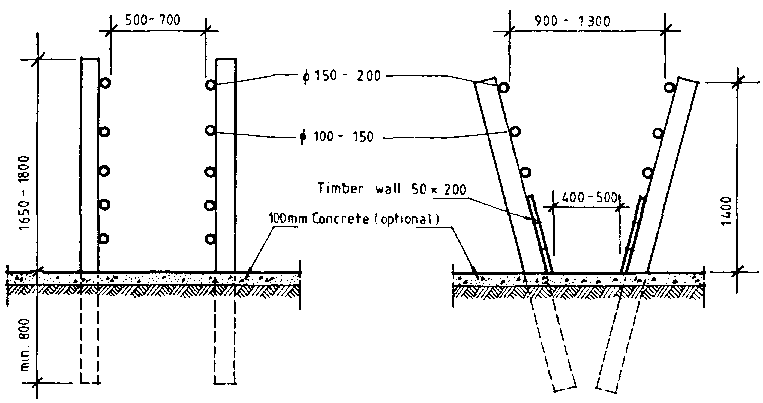 Figure 13.21 Alternative sections for cattle race.