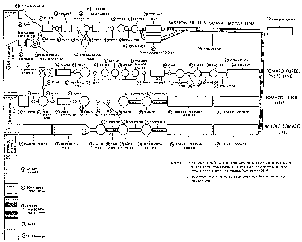 The following pages list recommendations for various specialised processing lines for tomato products and for tropical fruit products.
