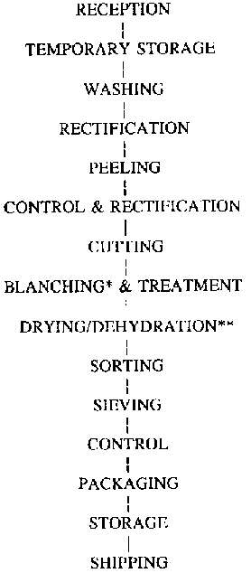 Three processing recommendations made in this flow-sheet have to be followed, among others, for all dried/dehydrated products: