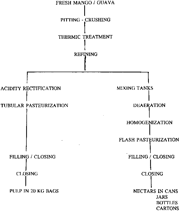 FLOW-SHEET FOR MANGO AND GUAVA PROCESSING - PULPS AND NECTARS