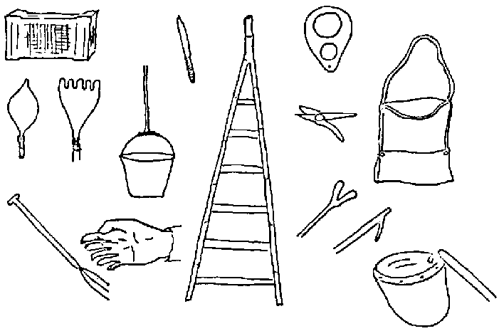 Each individual should be issued once only with necessary equipment and given clear instruction and training in its maintenance. It should then become that individual's responsibility to keep knives and clippers both clean and sharp, and to keep other equipment such as boxes, poles, nets and bags in a good state of repair. Blunt and dirty knives and clippers are potent sources of bacterial soft-rot contamination of both fruits and vegetables.