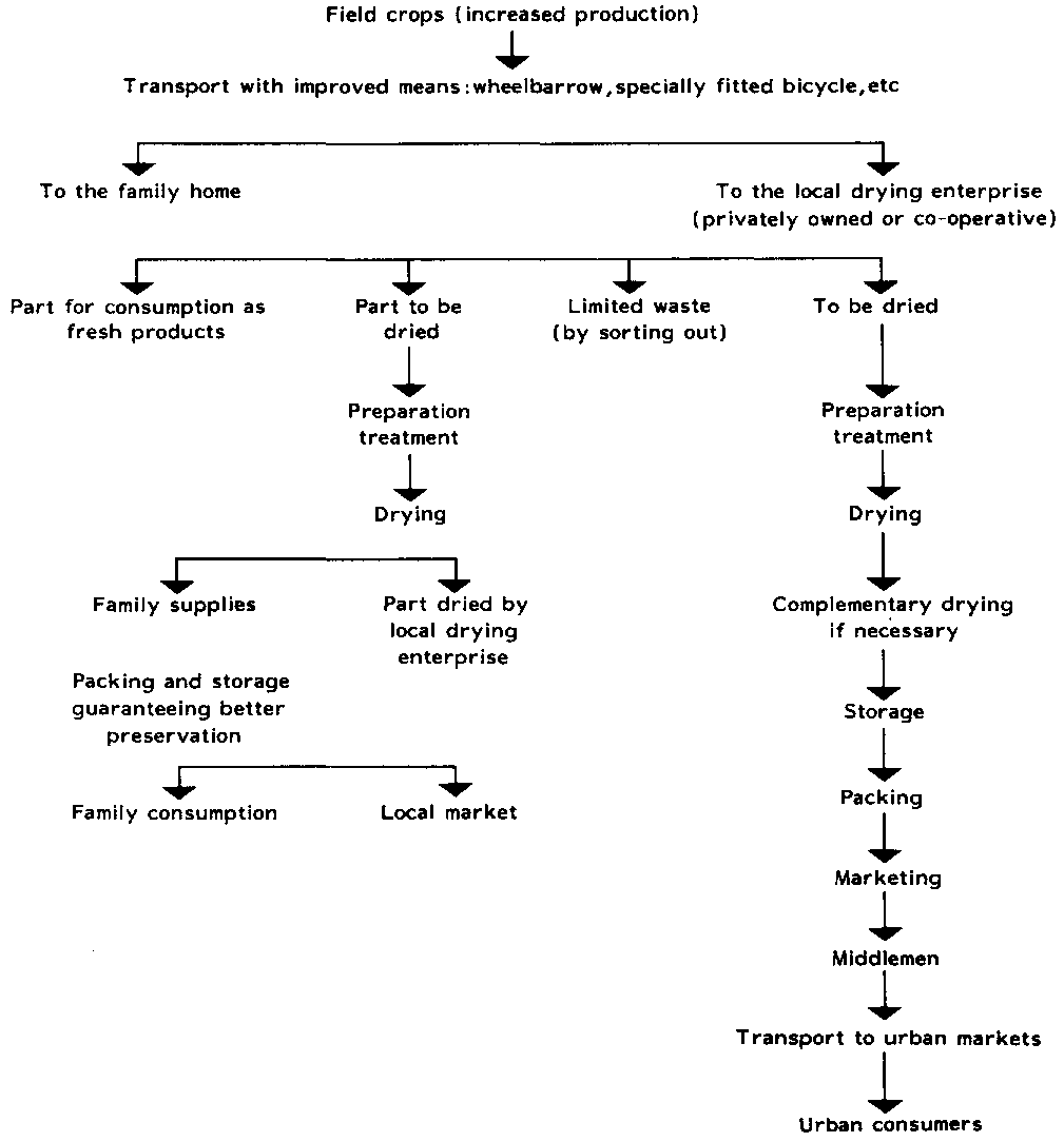 2. losses (sometimes 50 %) could be reduced through the use of more efficient techniques. (adequate pretreatment of raw products, improved sundriers, improved storage and packaging)