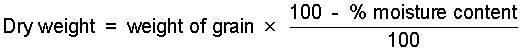There will now be five mean weights for each variety at five accurately measured moisture contents. Each of these weight should then be converted to dry weight as follows: