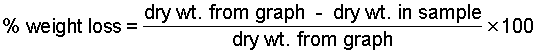 % dry weight loss = [670 - 600] / 670 x 100 = 10.44%