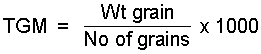 The formula is obtained by multiplying [m x 1000] / 100 which gives the Thousand Grain Mass on a wet basis, and by [100 - H] / 100 to convert the TGM to the dry basis.