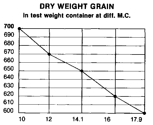 For example, if the volume of grain in the test weight container weighed 800 9 and had a moisture content of 15% then its dry weight is: