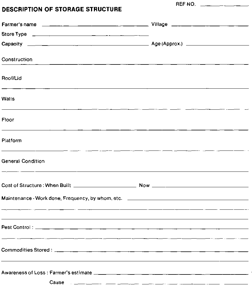 (i) Record a full description of the selected store using Form Sl - DESCRIPTION OF STORAGE STRUCTURE. Complete each section of the form as fully as possible and make a simple sketch of the store, giving dimensions, on the back of the form.