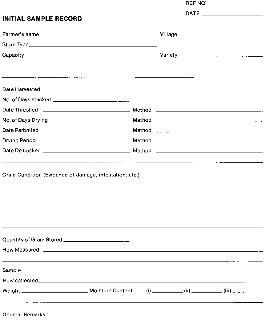 (ii) Weigh the grain into store, or if this is not possible estimate the quantity stored. Enter full details concerning the condition of the grain at storage on Form Sll, the INITIAL SAMPLE RECORD.