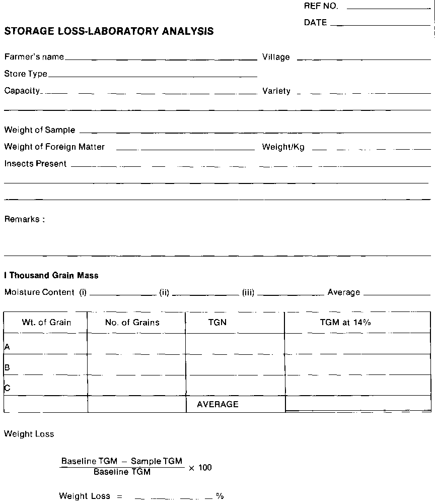 (i) A SUMMARY SHEET (Form SV) will be used to assemble all relevant data for the calculation of total weight loss. This summary sheet can be completed as and when the data are available. All weights will be expressed on a 14% moisture content basis.