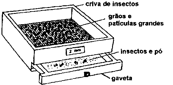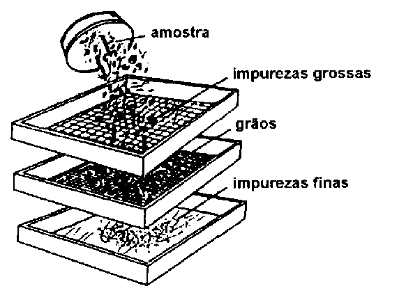 Impurezas do mesmo tamanho que o produto armazenado não podem ser crivadas e devem ser separadas individualmente.