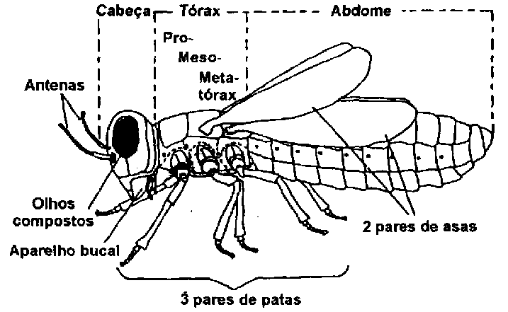O corpo de um insecto divide-se em três partes: