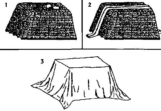 · Estenda a lona sobre a pilha de tal forma que fiquem pelo menos 50 cm de lona no solo de cada lado (3)!