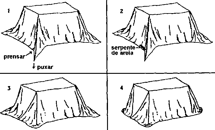 - Distribuir as serpentes de areia sobre a lona, ao redor de toda a pilha, de maneira a que fique sobreposta em 1/4 de seu comprimento!