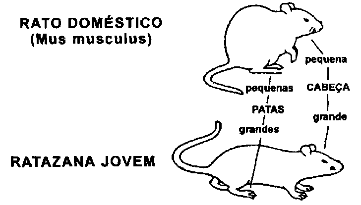 As características distintivas das espécies mais importantes de roedores são indicadas no quadro e na ilustração a seguir.