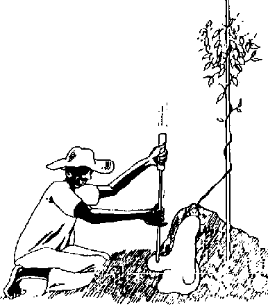 Au moyen de cordes, généralement en fibres végétales, on attache les tubercules d'igname les uns au-dessus des autres sur les pieux verticaux, en commençant par le bas. Les paysans se servent en l'occurrence d'une technique de liage déterminée (NWANKIT1 et MAKURDI, 1989).