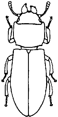 - Coléoptère long de 2,7-3 mm. Tête moitié aussi large que le pronotum dont les côtés sont légèrement explanés. Elytres avec stries longitudinales fortement ponctuées. Brun-roux (fig. 48 A) ................ Lophocateres pusillus (KLUCI, 1832) (Ostomidae)