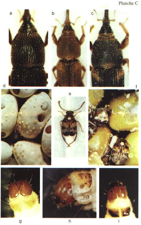 Rangée moyenne: Callosobruchus chinenensis: d, grains de
