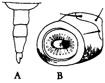 - Les pattes ventrales sont bien développées et du type coronate (fig. 96 B). Elles sont constituées d'un socle charnu non segmenté à contour circulaire et surmonté d'une couronne de crochets, souvent de longueur inégale. Petites chenilles unicolores, le plus souvent légèrement teintées (blanchâtres' jaunâtres ou rougeâtres)