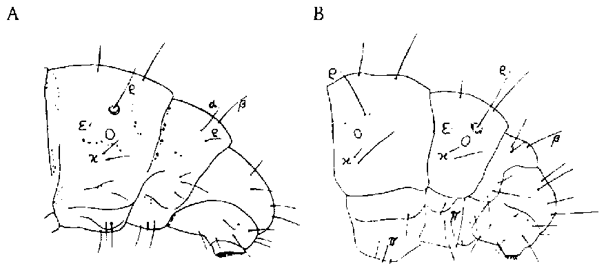 - Les soies dorsales postérieures (ß) sur chaque segment abdominal sont 3-5,5- fois plus longues que les soies antérieures (a). La grosseur des stigmates du 7e segment abdominal est comprise entre celles des stigmates des 6e et 8e segments 18