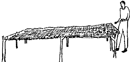 Séchoir direct semblable à ci-dessus mais construit près du sol, en général ne peut contenir qu'une seule couche de produit. |