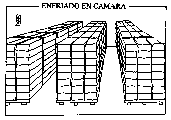 Es importante dejar un espacio adecuado entre las pilas de cajas (unidades de carga) dentro de la cámara de refrigeración para que el producto se enfríe lo más rápidamente posible. Las pilas de producto deberán ser estrechas, aproximadamente la anchura de una tarima. El aire circula en la cámara sobre las superficies y a través de cualquier espacio abierto de forma que el entrado desde el exterior de las pilas hacia el centro es principalmente por conducción. (Para más información ver Mitchell en Kader, 1992).