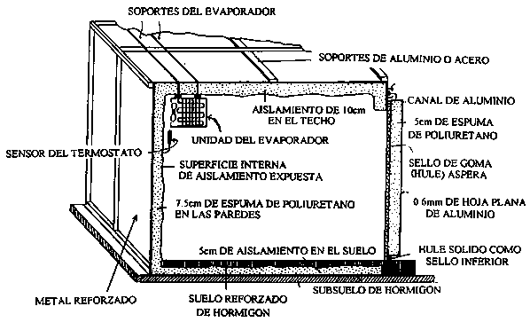 Fuente: Tugwell, B. L. Sin fecha. Coolroom construction for the fruit and vegetable grower. Department of Agriculture and Fisheries, South Australia. Special Bulletin 11.75.
