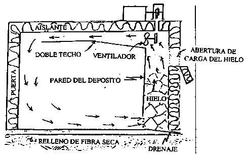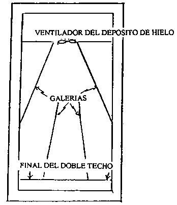 Detalle de un refrigerador de hielo: vista superior - las galerías sobre el doble techo mejoran en gran medida la distribución del aire y subsecuentemente, el enfriado