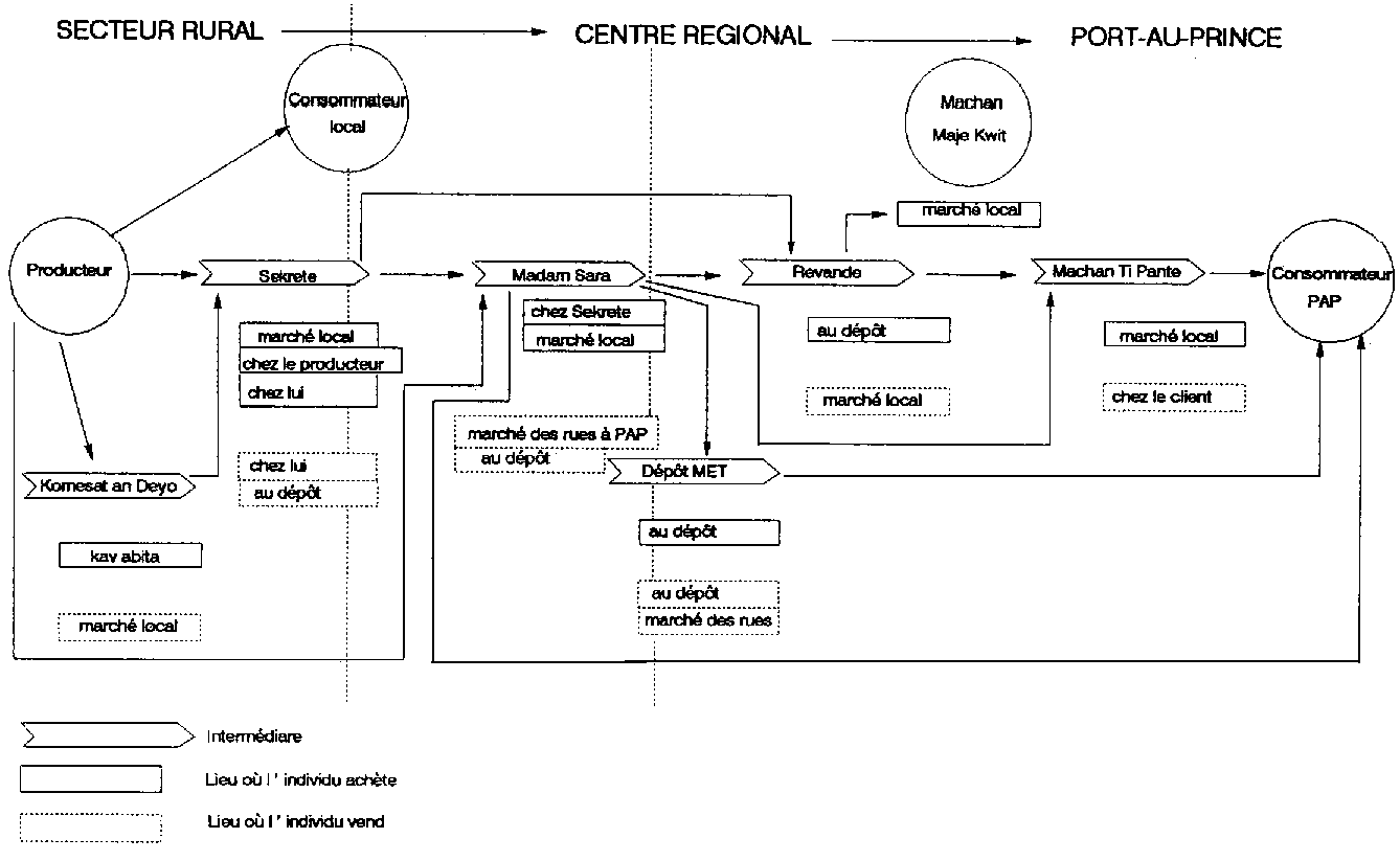 Figure 2.1A: Le mouvement du haricot depuis le producteur jusqu'au consommateur en Haïti