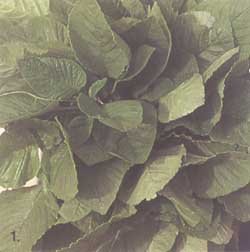 Plante à gros bourgeon terminal composé de feuilles vert pâle compactes |