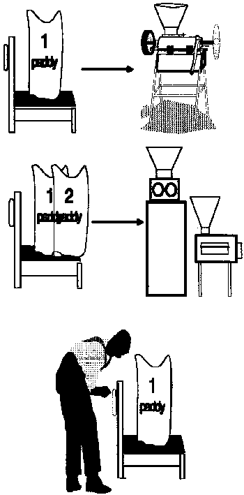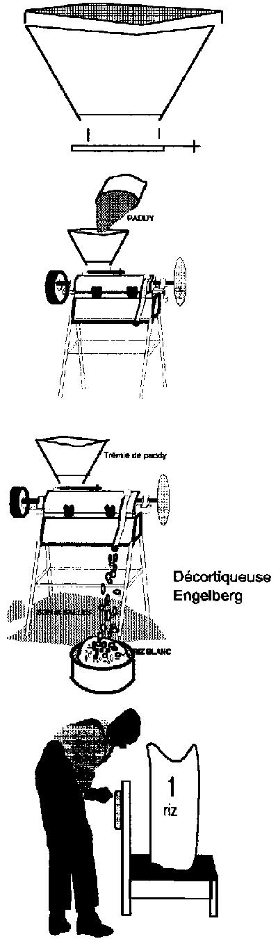 - décortiquer manuellement les grains de paddy,