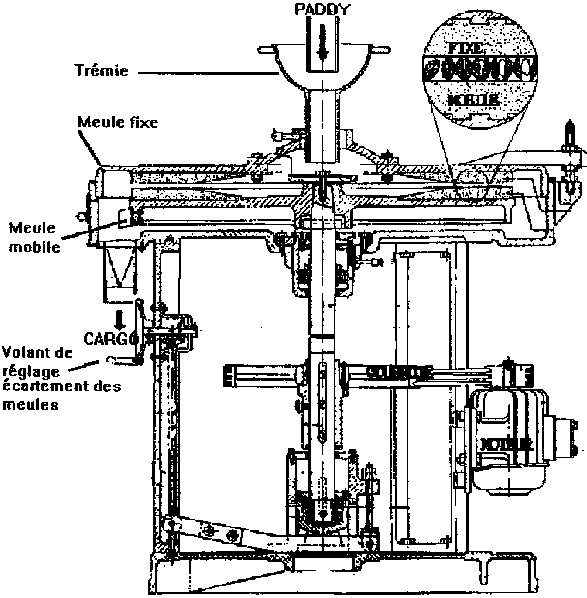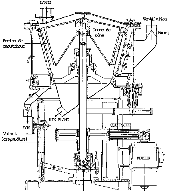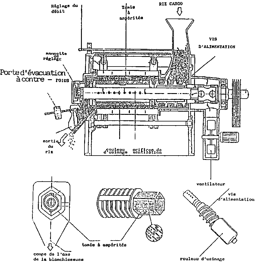 · le couteau de réglage de la décortiqueuse villageoise doit être un peu déserré et il ne faudra pas décortiquer trop de riz à la fois!· le "volant" ou les "poids" des blanchisseuses des rizeries devront être allégés pour ne pas garder le riz trop longtemps dans la chambre de blanchissage.