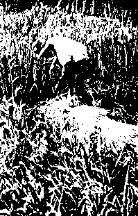 1. Dans votre parcelle, choisir TROIS EPIS, bien JAUNES ET DORES, 1 au Centre et 2 aux endroits où le riz pousse bien, sans mauvaises herbes.