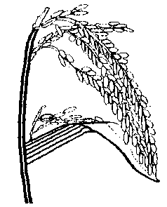 · en observant un épi, les grains situés en bas sont moins durs que les autres. Quand on les mord, ils sont mous et contiennent un "lait" blanchâtre qui est de l'amidon en cours de formation, dans ce cas, le paddy n'est pas encore mûr. On attend.