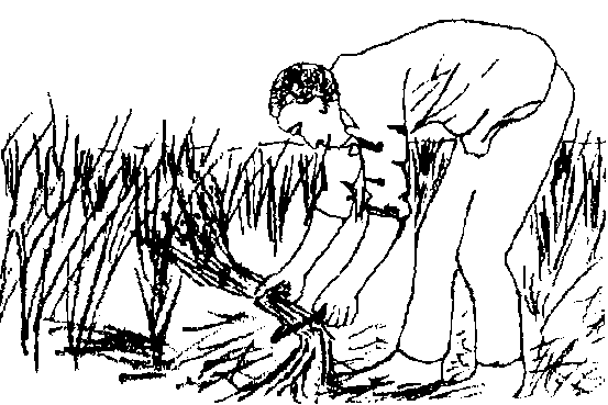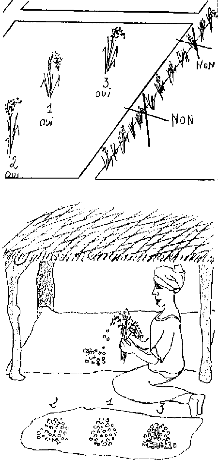 - Préparer les épis de paddy récoltés et séchés en les rangeant en gerbes et en les liant. Les stocker dans un endroit sec et protégé.- METHODE DE LA MEULE RONDE (vallée du fleuve):