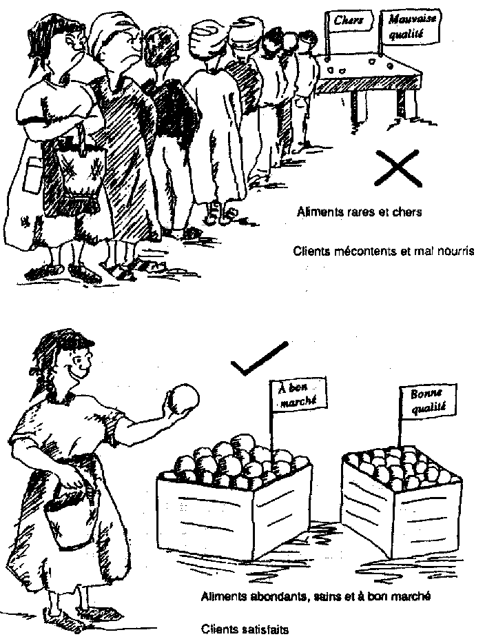 Il appartient aux vulgarisateurs d'user d'imagination et d'intelligence pour maximiser la proportion du prix de vente des denrées alimentaires qui revient à la communauté rurale. Une bonne commercialisation permet de réduire le coût des produits frais (ce qui est un atout pour la santé publique) et d'élargir les débouchés des produits végétaux de haute valeur, qui constituent un élément essentiel des systèmes viables de petite agriculture.