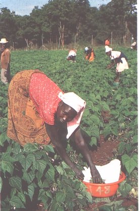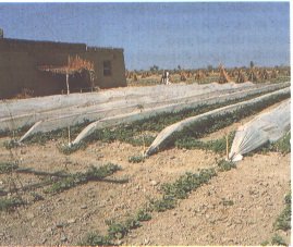 En el campo, las habichuelas verdes se cubren con lienzos húmedos para protegerlas del so
