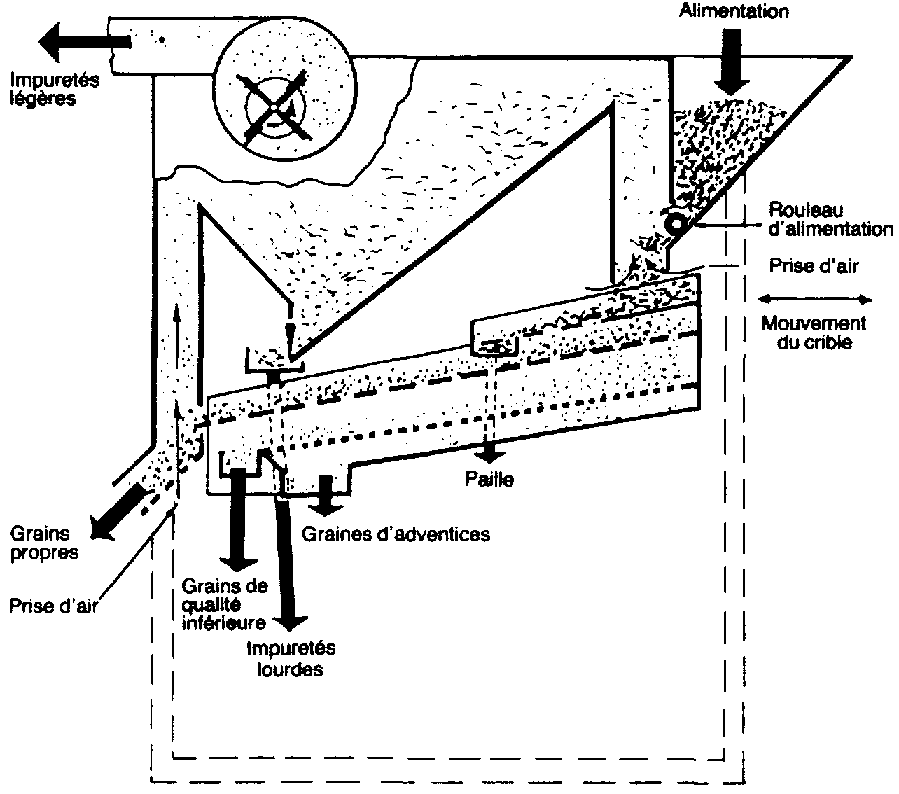 Figure 12.4 Machines à nettoyer le grain d deux cribles et aspirateur de tête.