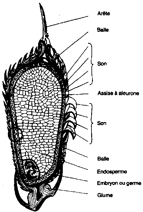 Figure 13.2 Coupe verticale d'un grain de paddy grossi.