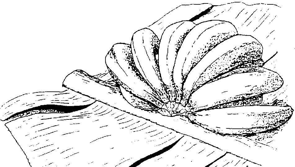 Las manos o manojos deben embalarse en cajas, con la parte curva hacia arriba, como se indica en la Figura 38, asegurándose de que las coronas de las manos colocadas encima no dañen los bananos de debajo. Las cajas tienen que estar llenas pero no en exceso; de otro modo los bananos se dañarían, pues sería la propia fruta, y no las paredes de las cajas, la que soportaría el peso de las cajas colocadas encima.