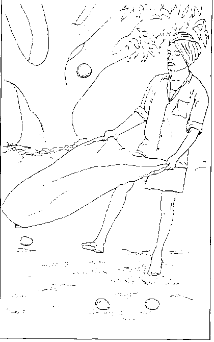 Para recolectar los mangos, los cosechadoras utilizan escaleras o se suben directamente al árbol y arrojan la fruta a alguien que la recoge desde el suelo (Figura 40).