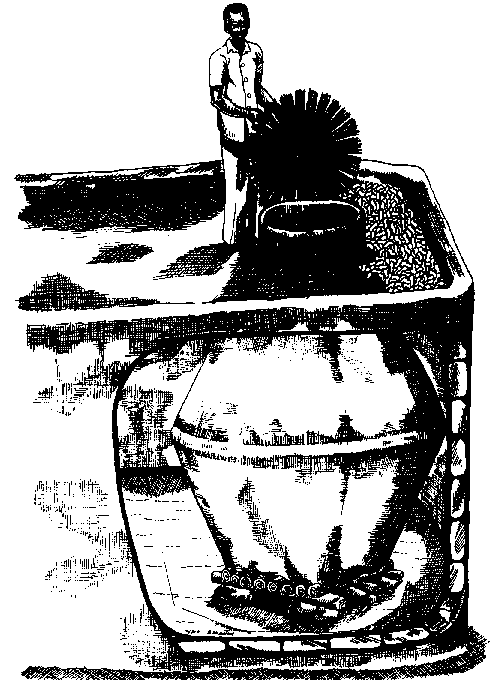 On doit également signaler la méthode de conservation des grains de niébé dans des jarres ou des canaris en argile, fermés de façon étanche. Des produits pulvérulents tels que la cendre chaude ou froide sont utilisés pour remplir le maximum d'espace interstitiel et donc occuper le vide qui, autrement, serait pris par l'air. Les déplacements des insectes sont par là même ralentis, et leur asphyxie, accélérée.