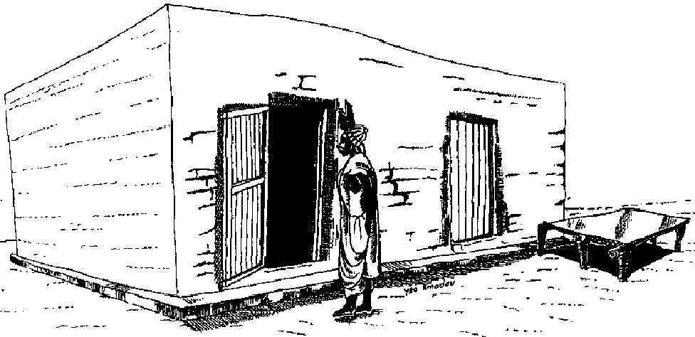 Chez les Diakhanké, le grenier traditionnel typique, appelé Kouroukoro, est entièrement construit en matériaux végétaux. Cependant, depuis une vingtaine d'années, sont apparues des structures nouvelles où le stockage en épis est fait à même le sol. Il s'agit de magasins aux murs de banco, parfois même en ciment, avec une toiture de tôle ondulée (cf. figure 1.2). Dans le village de Missira, près de Tambacounda, des cases construites sur le même modèle que les habitations, c'est-à-dire avec des murs de banco et une toiture en paille, sont également utilisées pour le stockage en vrac des épis à même le sol.