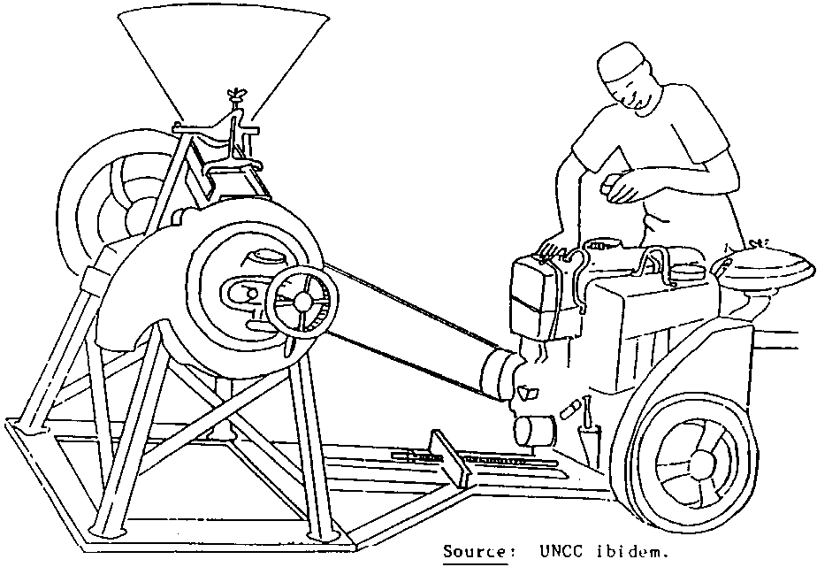 v) la facilité d'accès des pièces d'usure courante (meules, marteaux, grilles); l'appareil doit être facile à démonter et simple de fabrication afin d'éviter que toute panne ne prenne des dimensions disproportionnées, ce qui entraîne l'immobilisation de l'appareil pour de longues périodes: