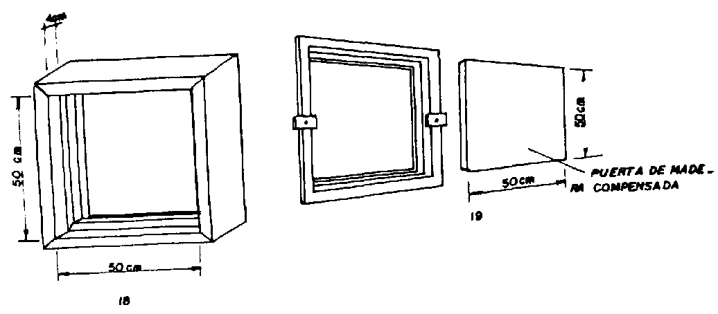 Elección del terreno. El terreno debe ser seco; la capa freática debe estar por lo menos a 1/2 m de profundidad; si al excavar a más de 1 m se encuentra agua, el terreno no sirve. El borde superior del barril debe quedar alineado con la parte exterior de la pared (figura 19).