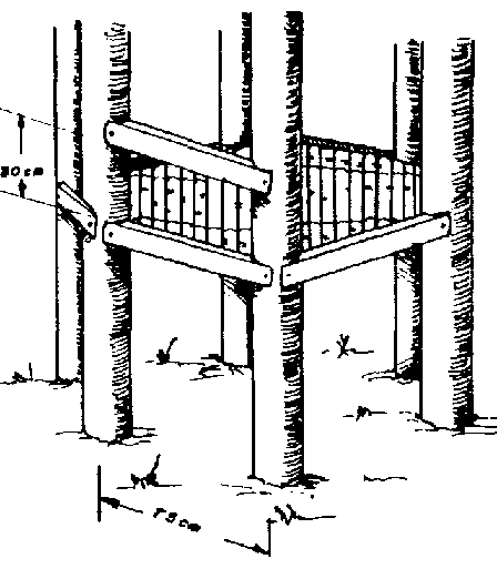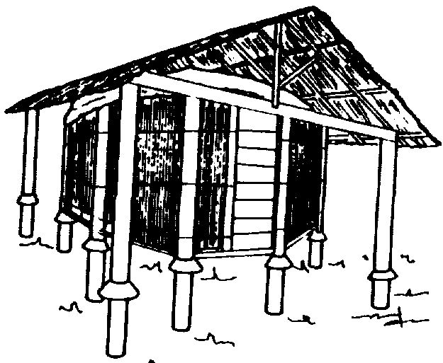 externamente con bambú y elevada a 80 cm del nivel del suelo.