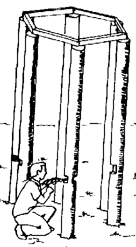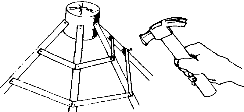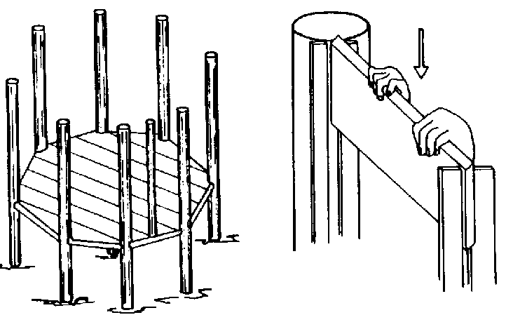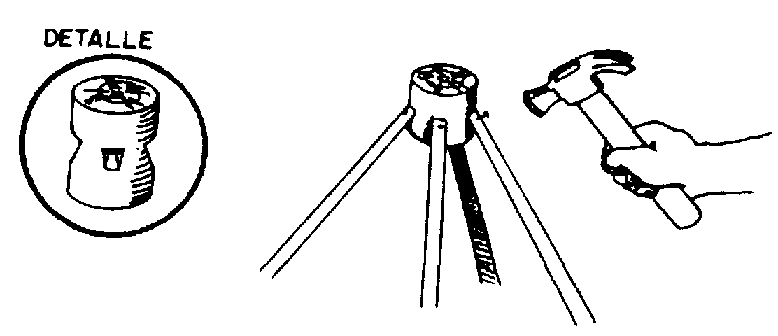 - Ponga los 8 postes en los agujeros, con los chaflanes de