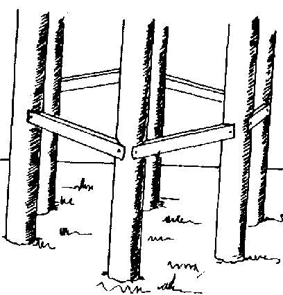 de 7,5 por 7,5 cm por 3 m de largo a I m de los postes de