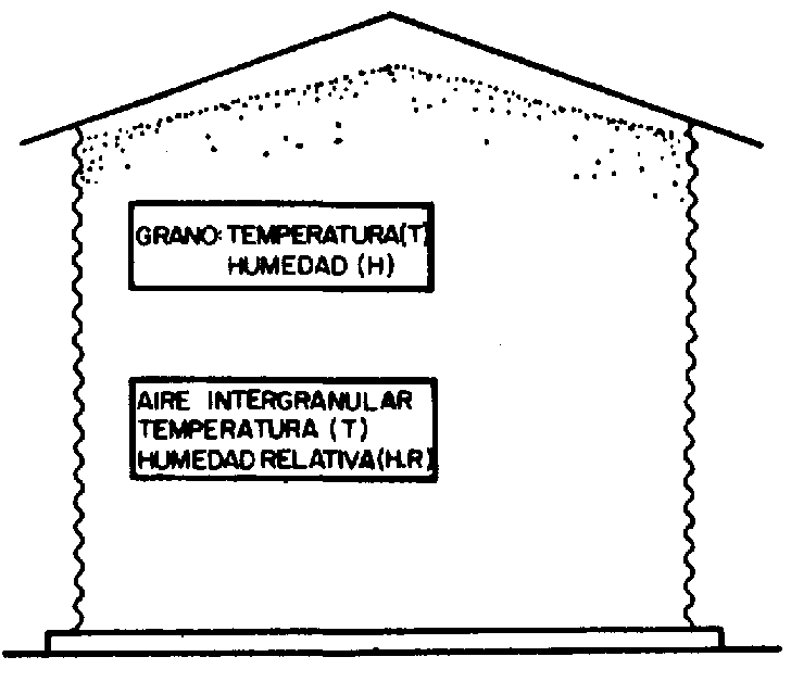 Los granos generalmente se almacenan a temperaturas relativamente altas, en comparación con las bajas temperaturas ambientales que pueden ocurrir, por ejemplo en una reglón en que el invierno es riguroso. De esa forma, si la temperatura ambiental es menor, los granos que están próximos a las paredes y a la parte superior de los silos metálicos tendrán una temperatura menor que la del interior de la masa y por lo tanto, existen condiciones para el establecimiento de corrientes de aire movido por convección natural.