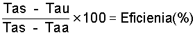 Otra forma de medir la eficiencia con que está trabajando una secadora es midiendo las temperaturas del aire de secado, del aire usado y del aire ambiente (Aguilar and Boyce, 1966), aplicando esta fórmula: