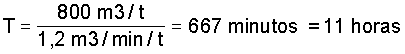 Si el caudal unitario fuera menor, por ejemplo, 0,9 m3/min/t, el tiempo será:
